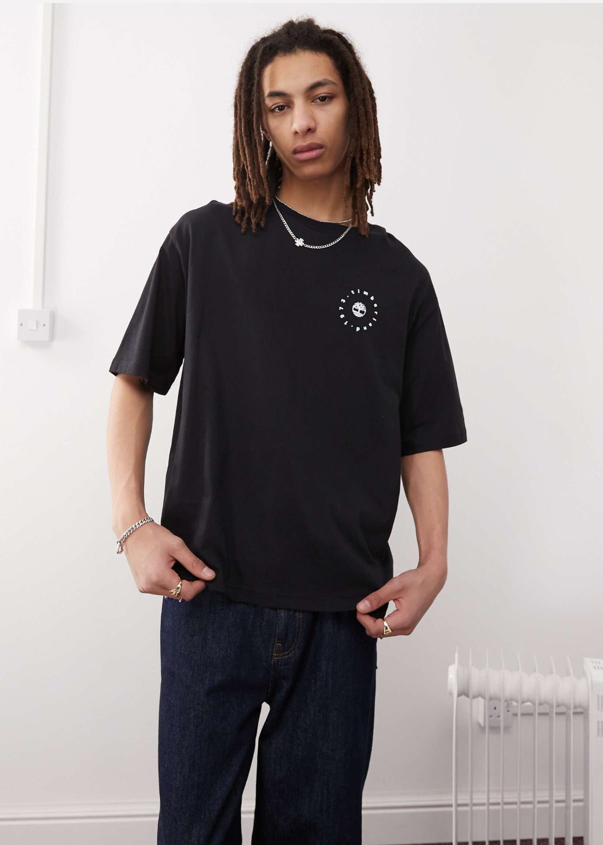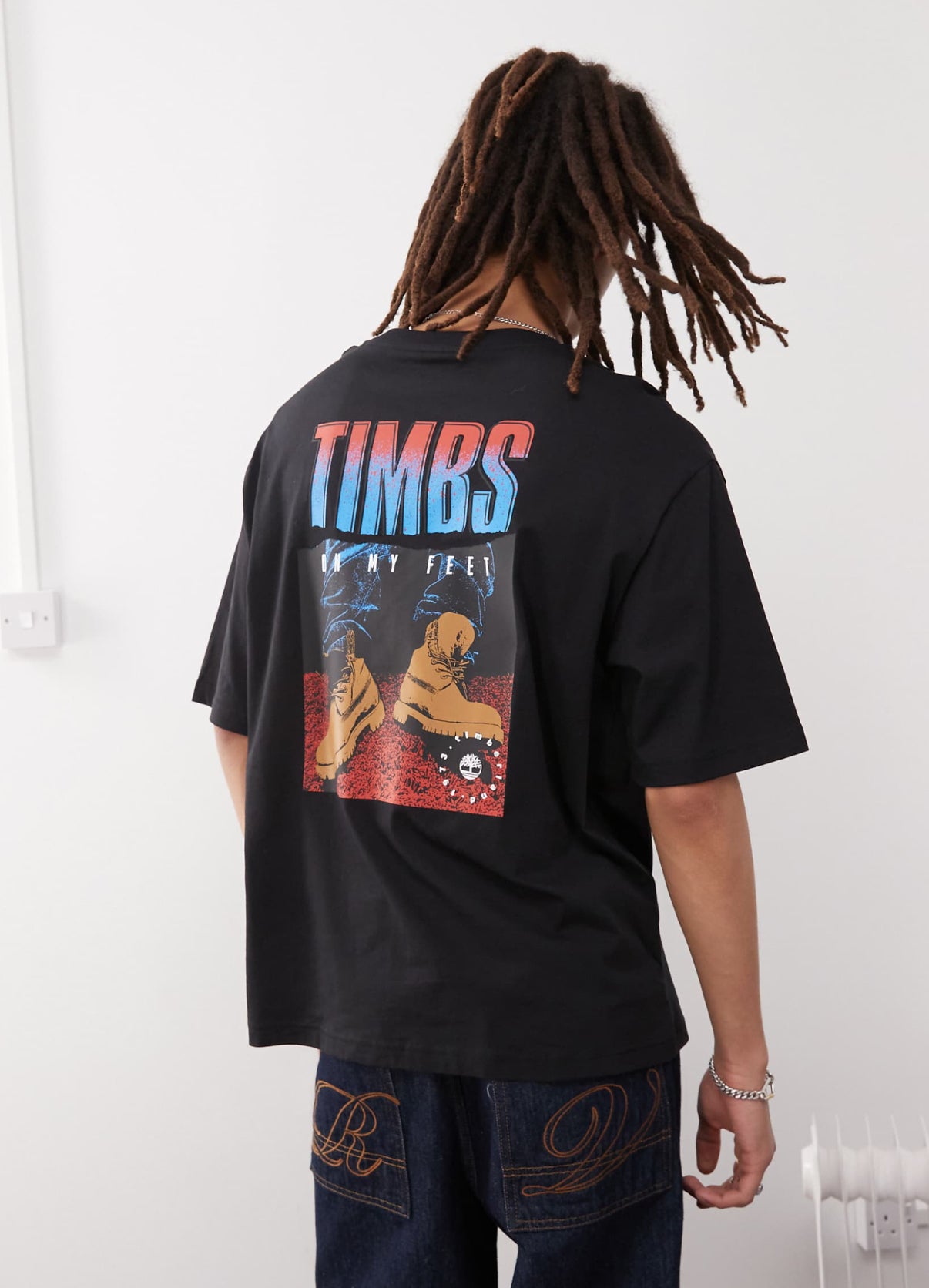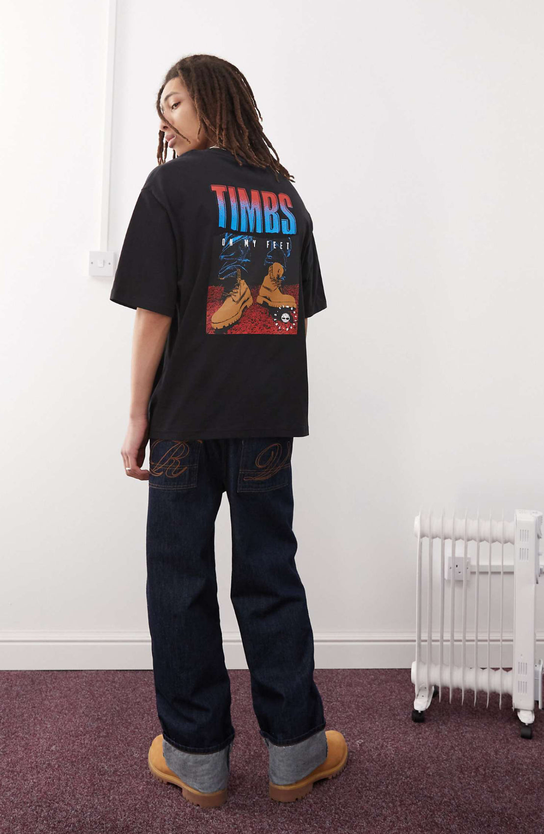 Timberland Timbs 6"" backprint oversized t-shirt in black
