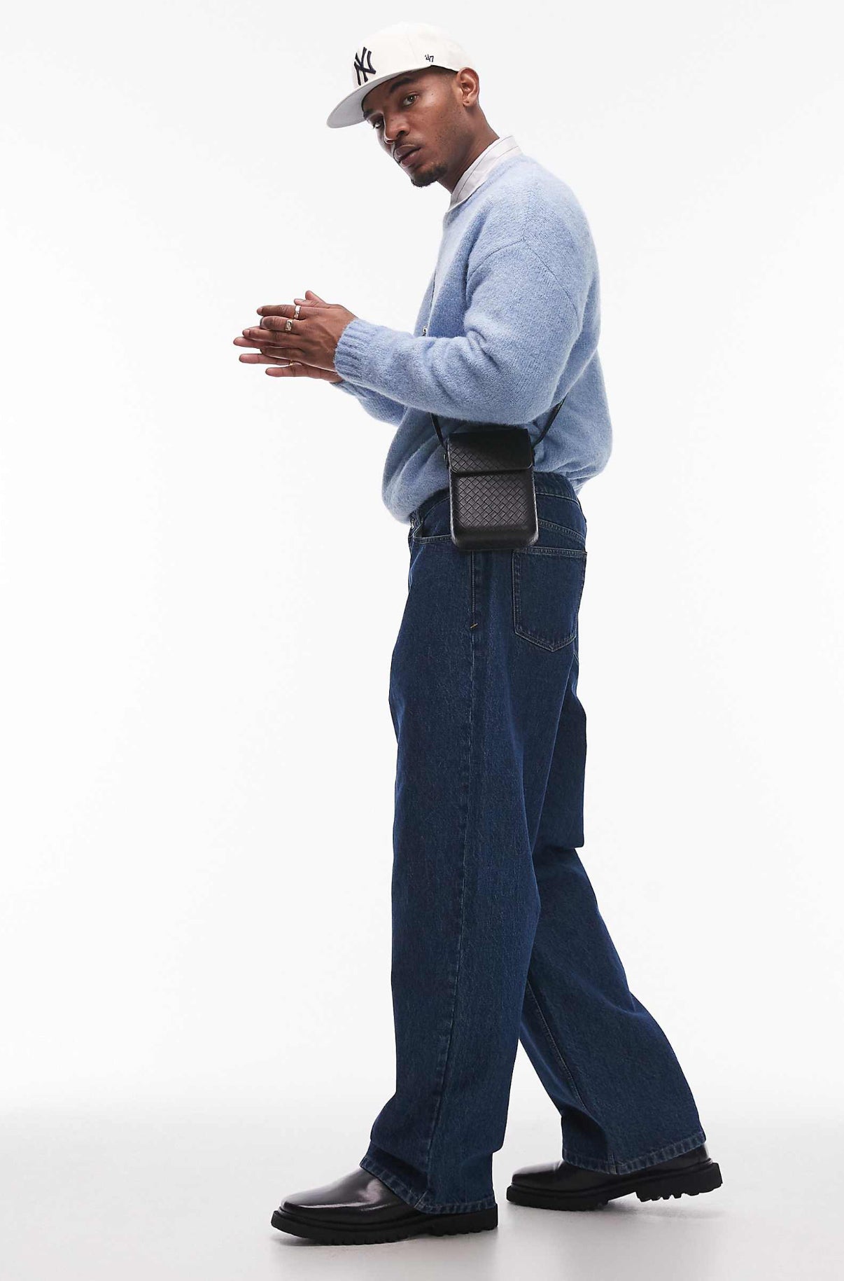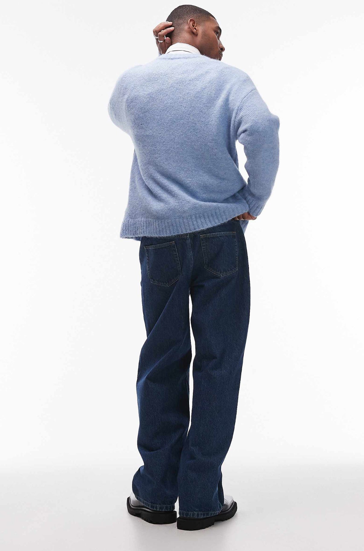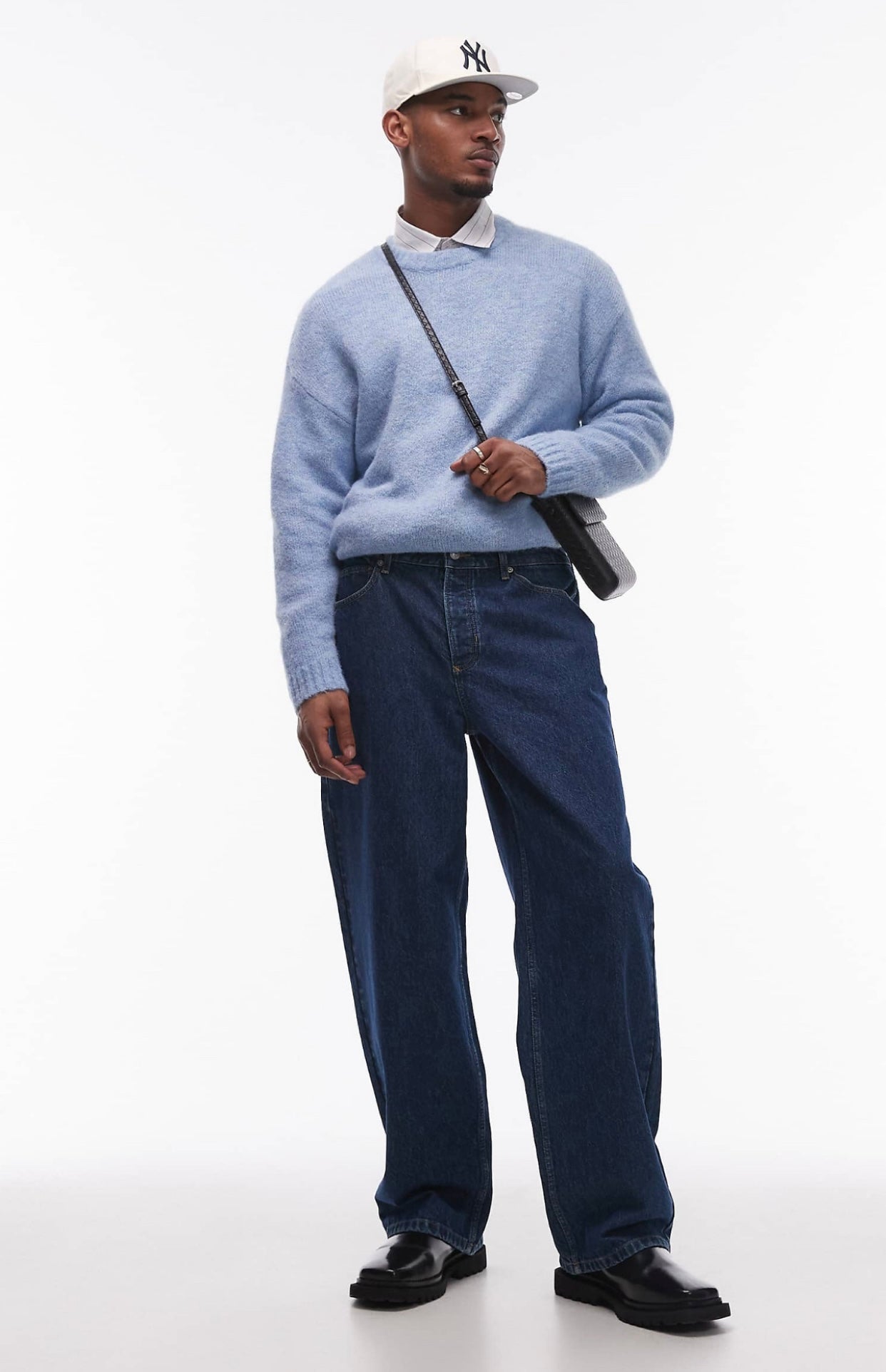 Topman baggy jeans in mid wash blue