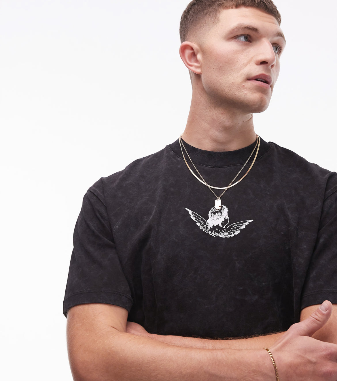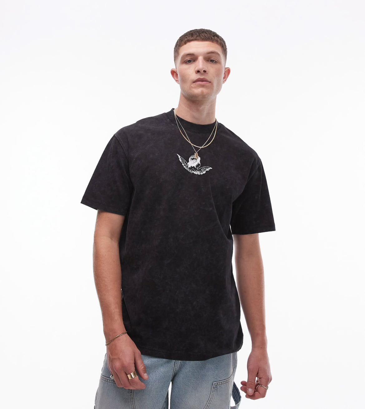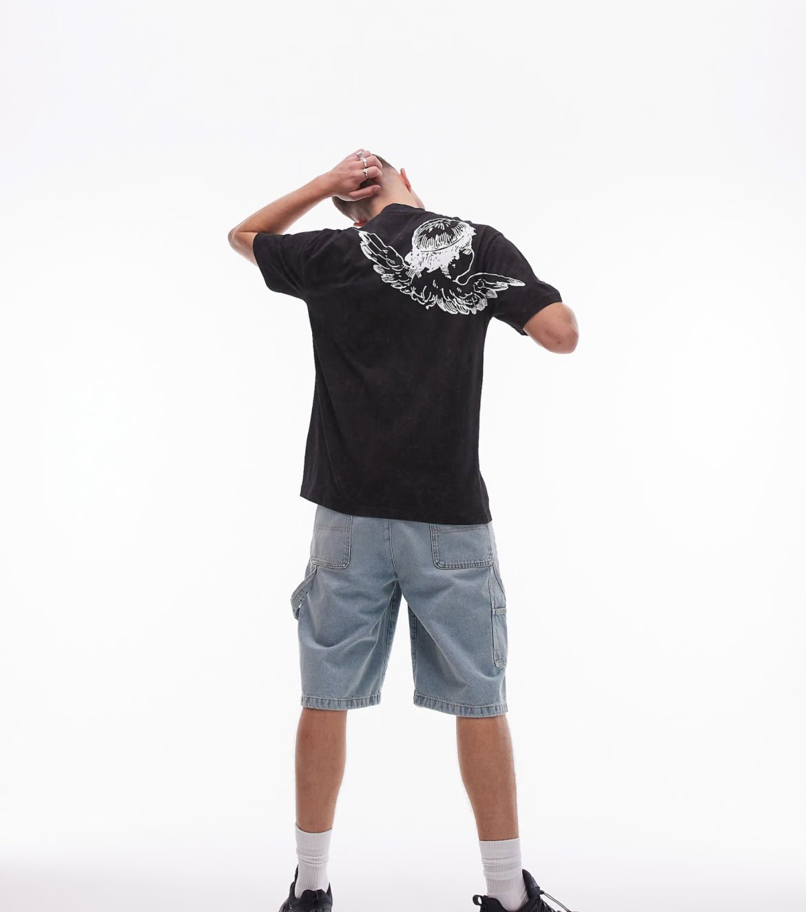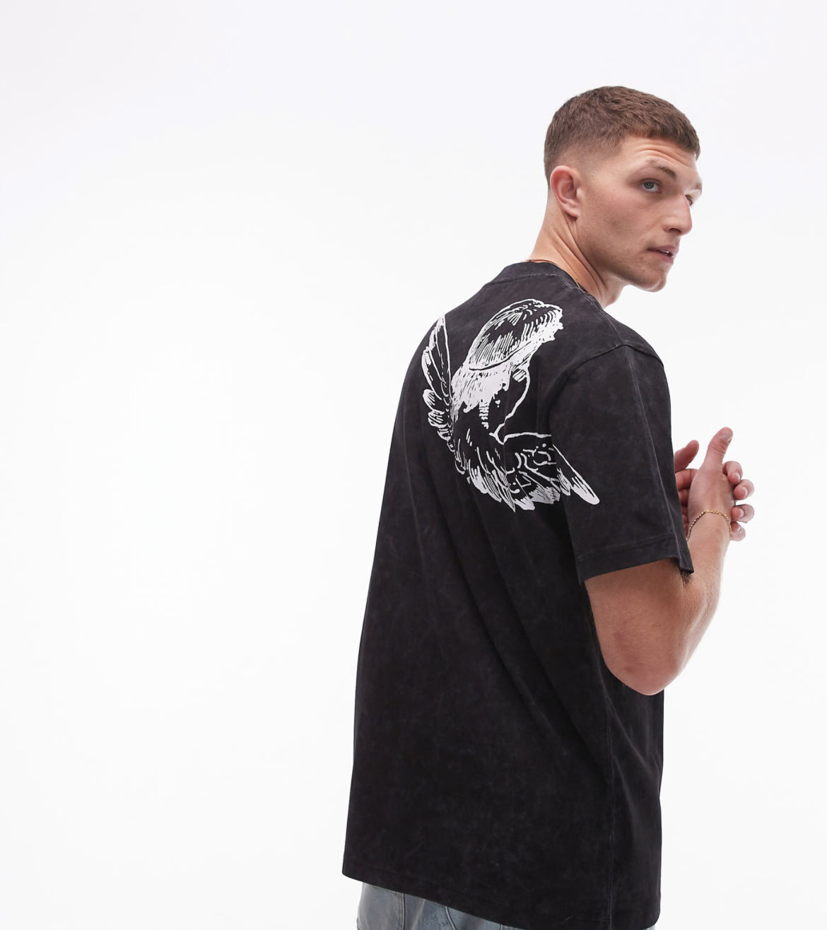 Topman extreme oversized fit t-shirt with angel front and back print in washed black