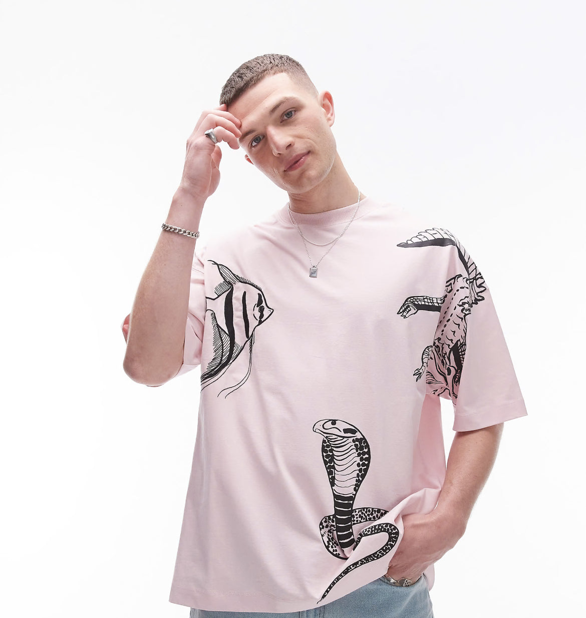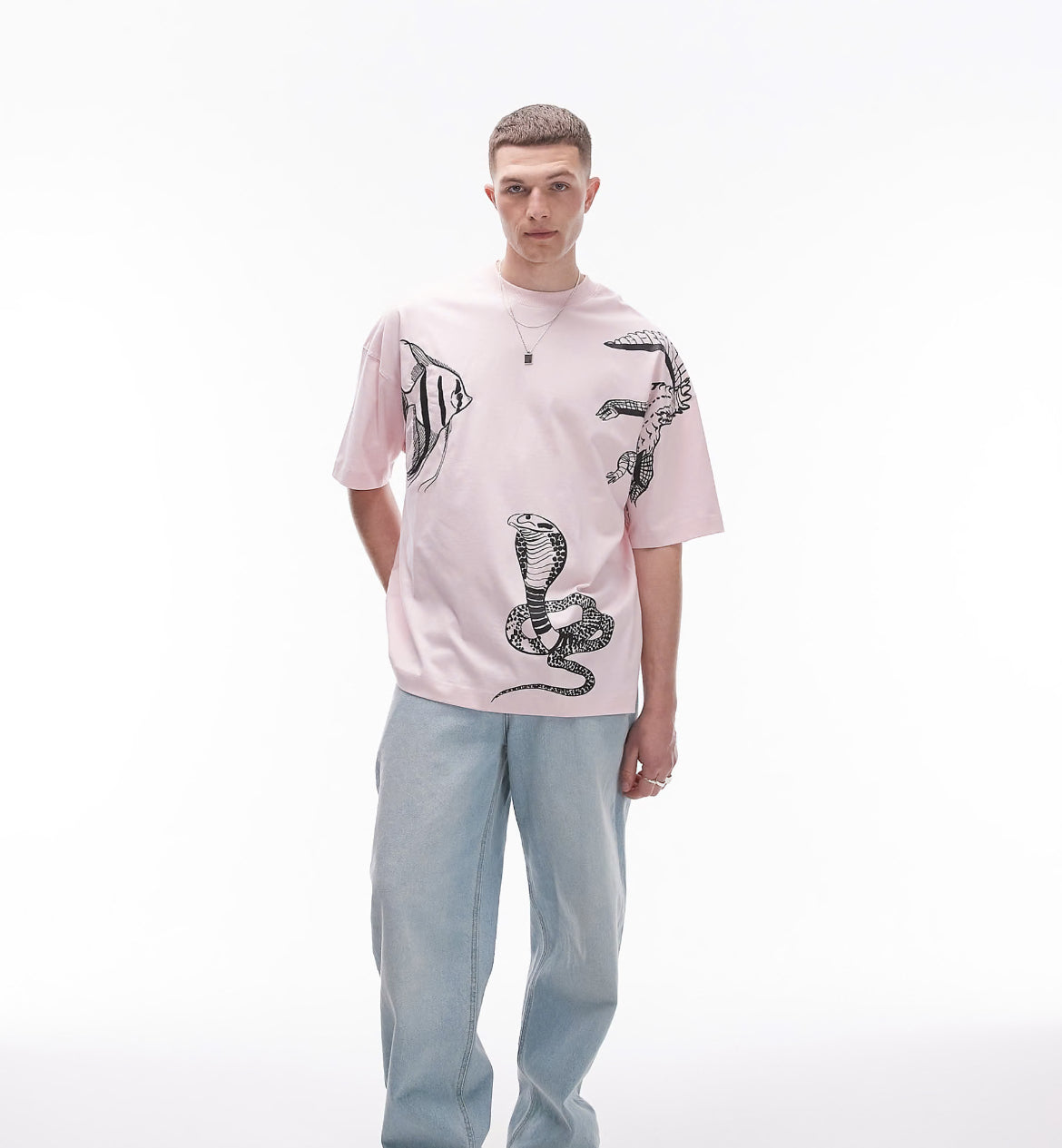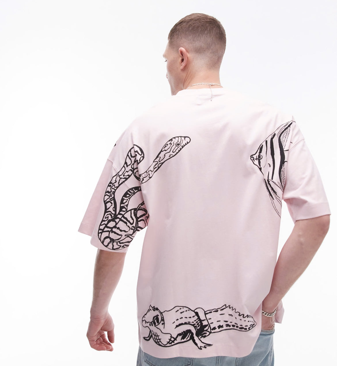 Topman extreme oversized fit t-shirt with animal embroidery in pink