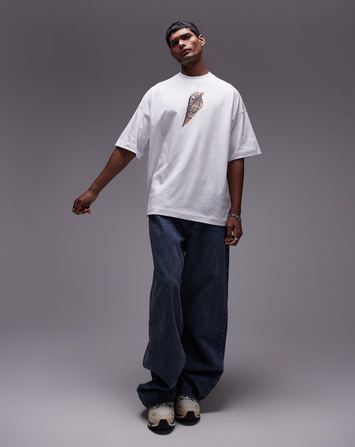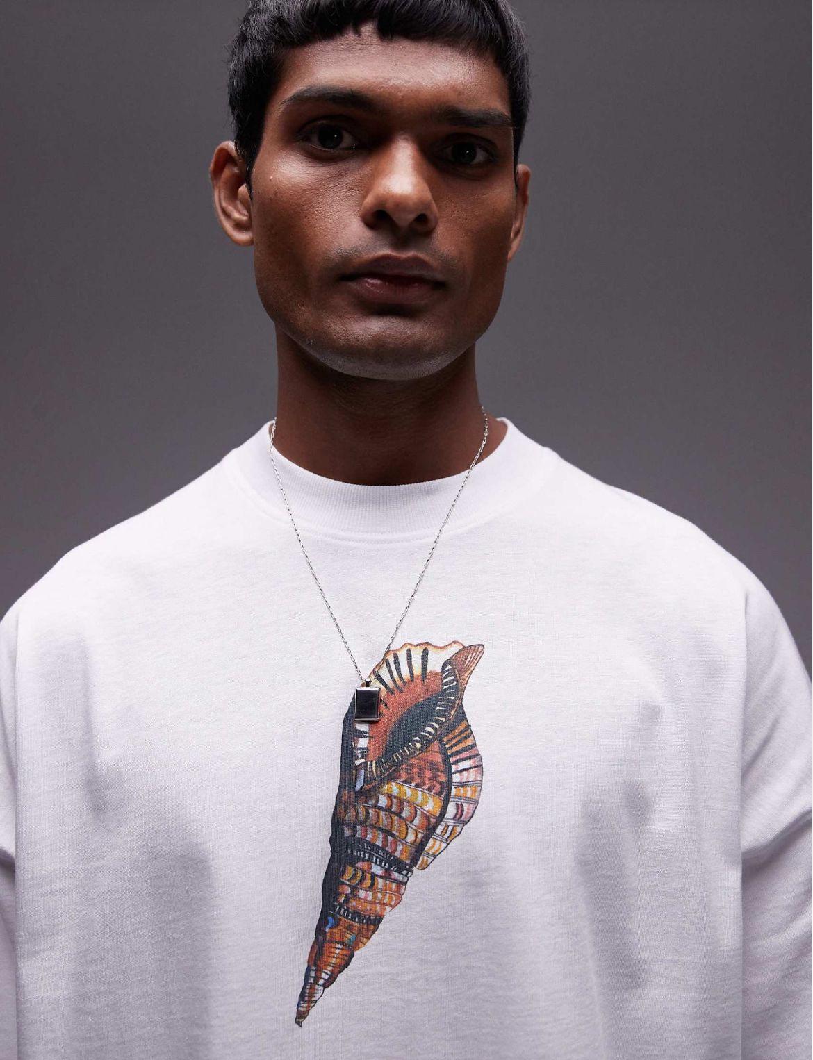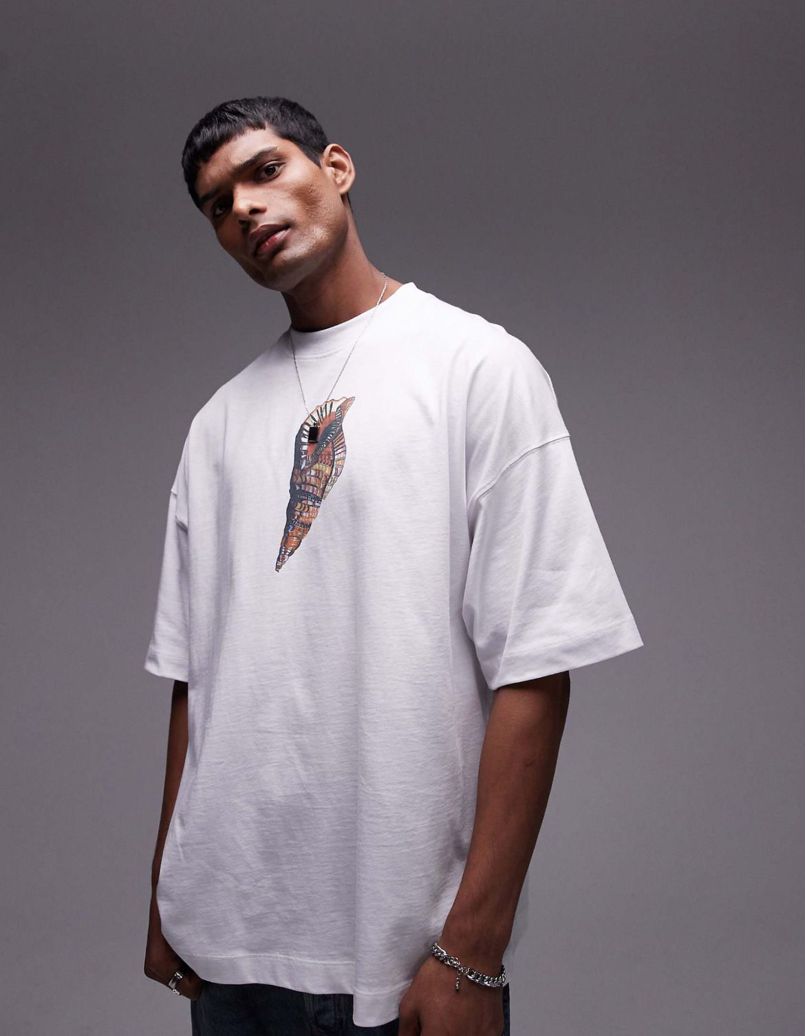 Topman extreme oversized fit t-shirt with painted shell print in white