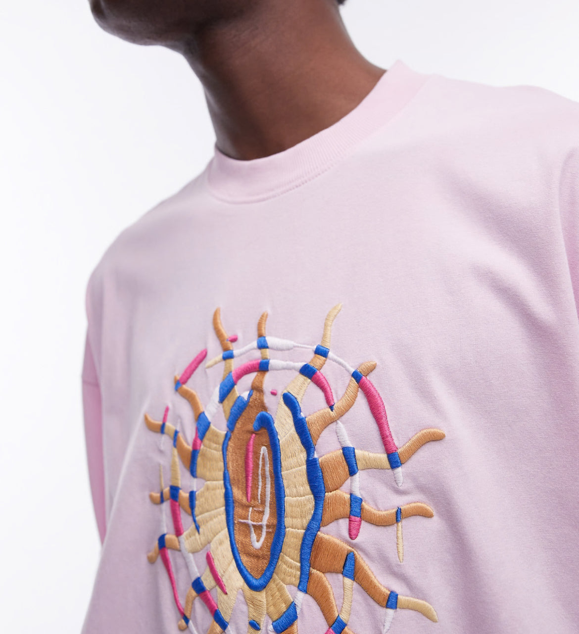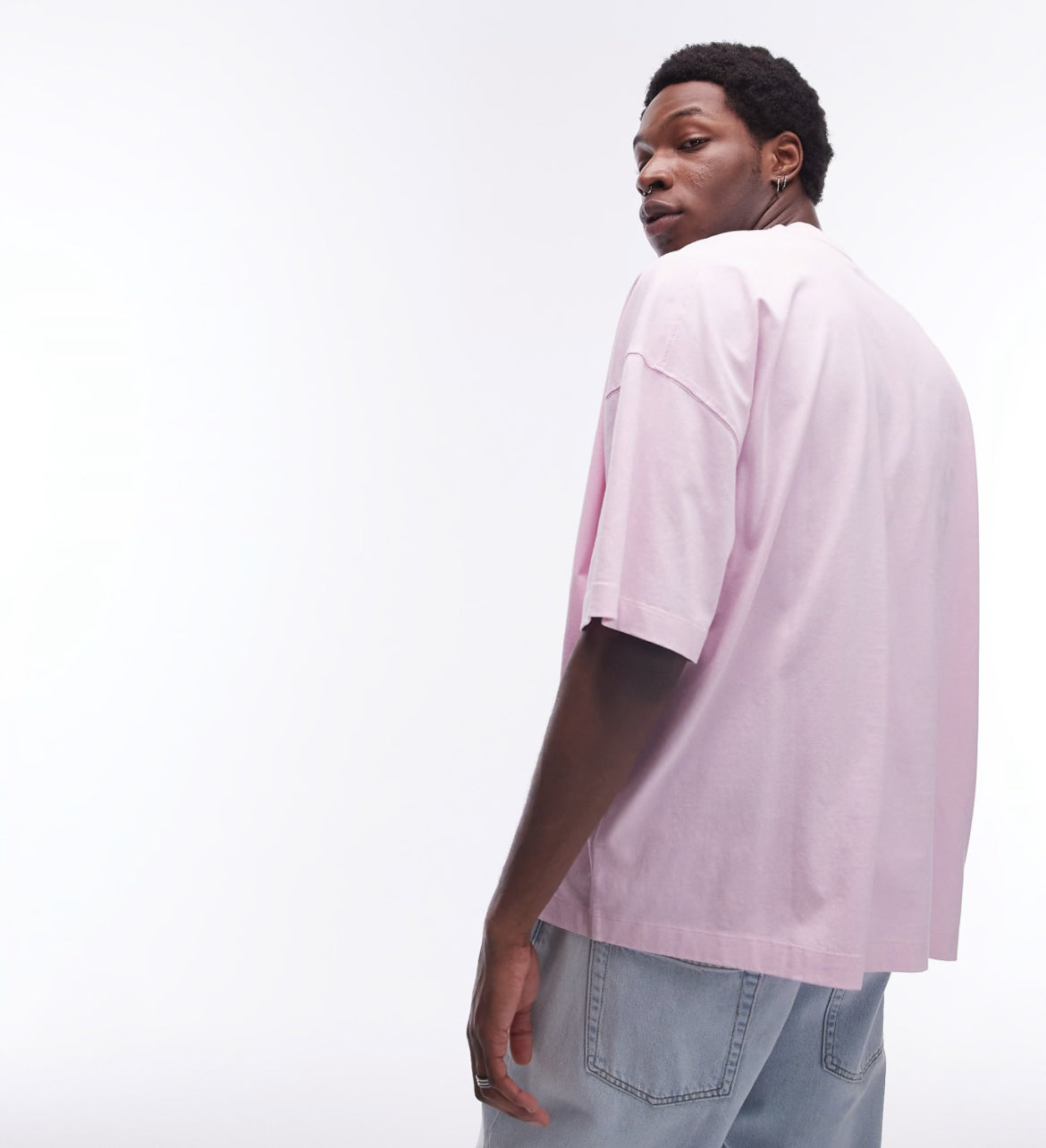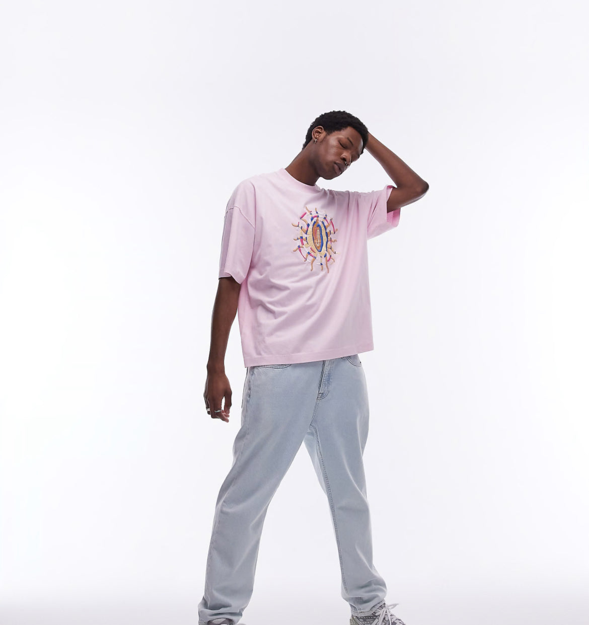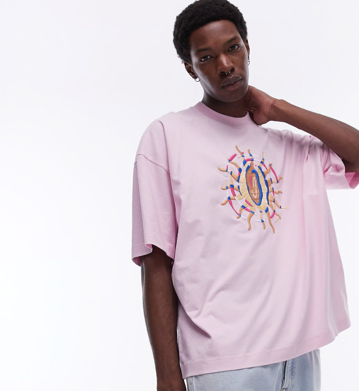 Topman extreme oversized fit t-shirt with sun embroidery in washed pink