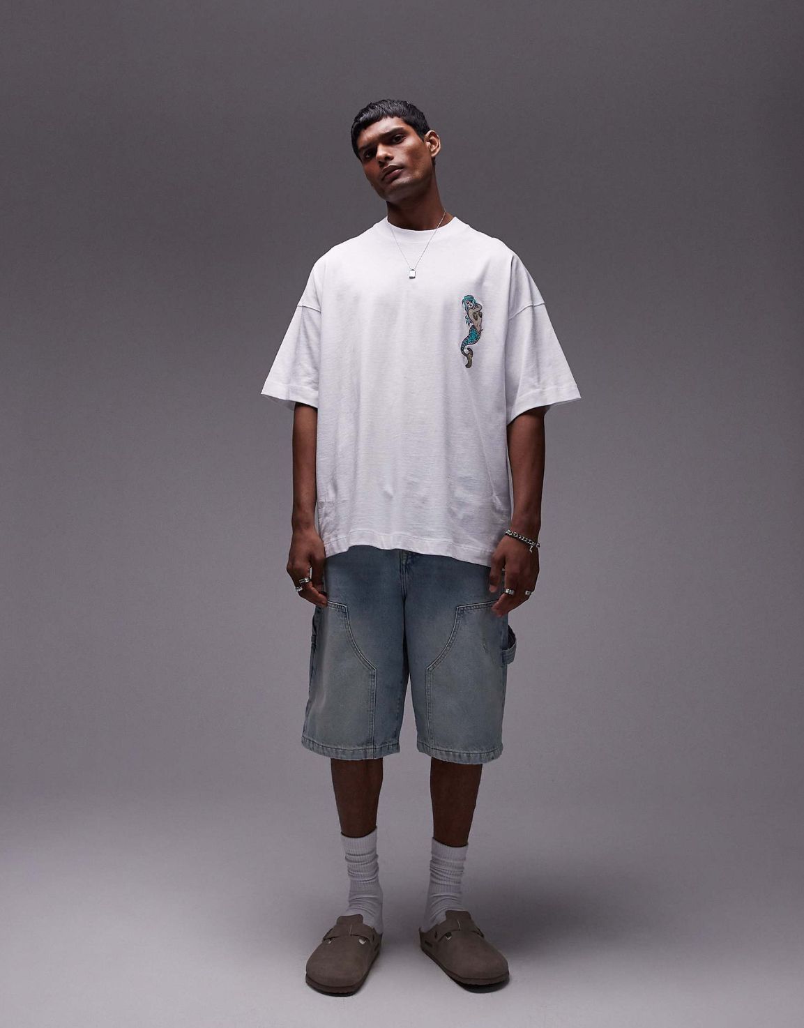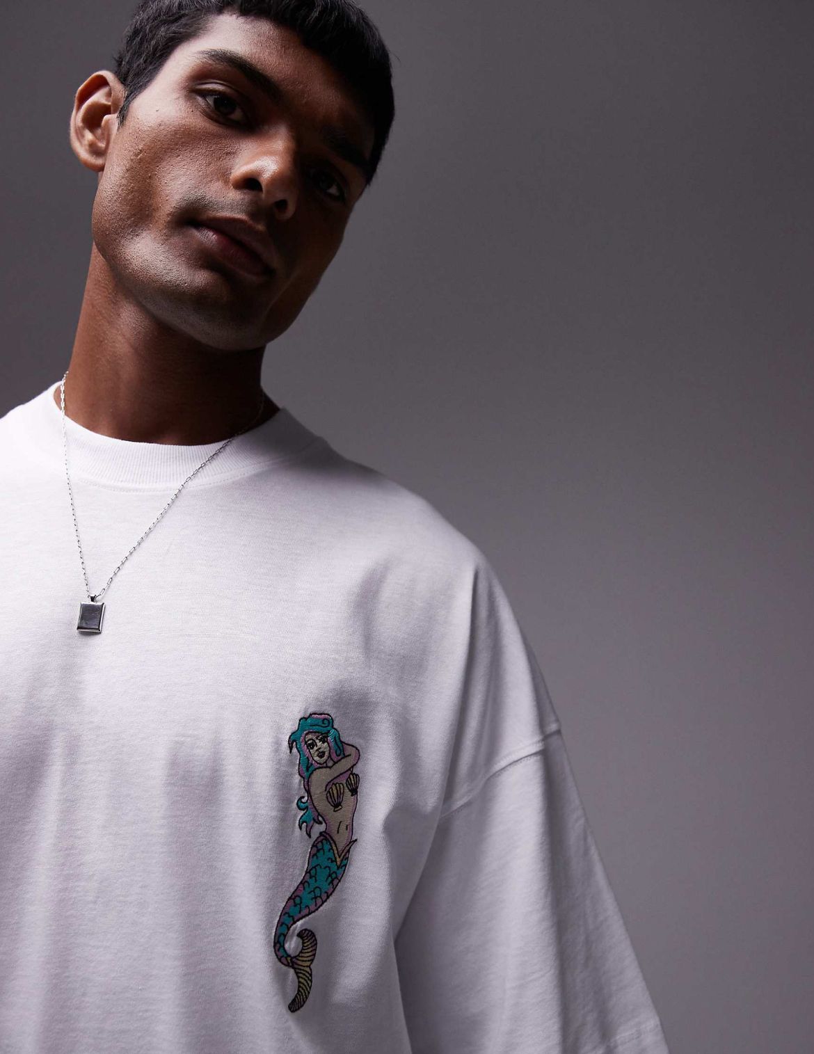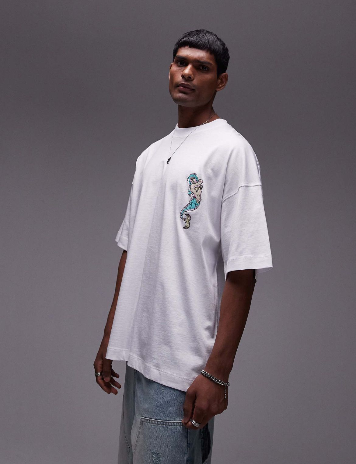 Topman extreme oversized fit t-shirt with tattoo mermaid embroidery in white